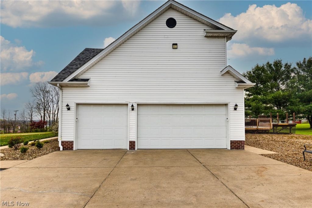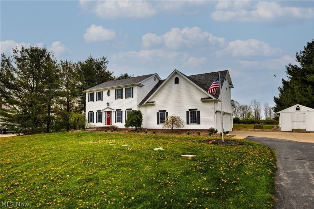 Step inside this beautifully maintained and thoughtfully updated home to discover a bright and inviting first floor featuring 9-ft ceilings, rich hardwood flooring, and plenty of windows that flood the home with natural light. The gourmet kitchen is complete with granite countertops, stunning cherry wood cabinetry, a spacious island with an additional full size oven and a pantry. Off the front entryway, a versatile bonus room with French doors has been recently upgraded with a custom bar, including a built-in double-door wine/beverage refrigerator and sink, perfect for entertaining or easily used as a home office or den. A formal dining room provides the perfect setting for gatherings, while the cozy living room features tray ceilings and a fireplace, creating a warm and welcoming atmosphere. Upstairs, the expansive master suite offers 2 large walk-in closets and a luxurious en-suite bath with cherry cabinetry, double sinks, a dedicated sit-down vanity, and a private toilet closet. A jr. suite includes its own full bathroom and walk-in closet. 2 generously sized bedrooms offer abundant closet space, along with a full bathroom featuring double sinks and a separate toilet area. Throughout, you'll find numerous closets equipped with automatic lighting, along with freshly painted walls. The large basement provides excellent additional living space and storage, large half bath, a spacious laundry area with a built-in ironing board. Outside, enjoy the beauty and privacy of 1.5 acres, a fire pit area, and a large deck, partially covered with a recent open-air expansion, perfect for relaxing or entertaining. In addition the home has a newer roof, furnace, water softener system and HWT, along with a recently added expansion tank. This exceptional property is located near the Lake Club, within the South Range school district and just minutes from shopping, dining, and major roadways, this home combines suburban tranquility with everyday convenience.